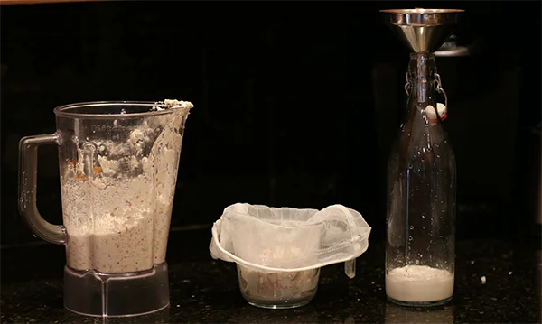 At this point, you will have a delicious bottle of fresh, creamy almond milk. And you can high-five yourself because honestly, it is a bit of work, and I usually make a complete mess.