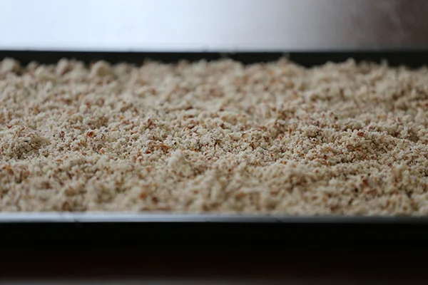 NOW, let's get back to that almond pulp! You should have dumped all that leftover pulp onto a cookie sheet, if you followed directions.