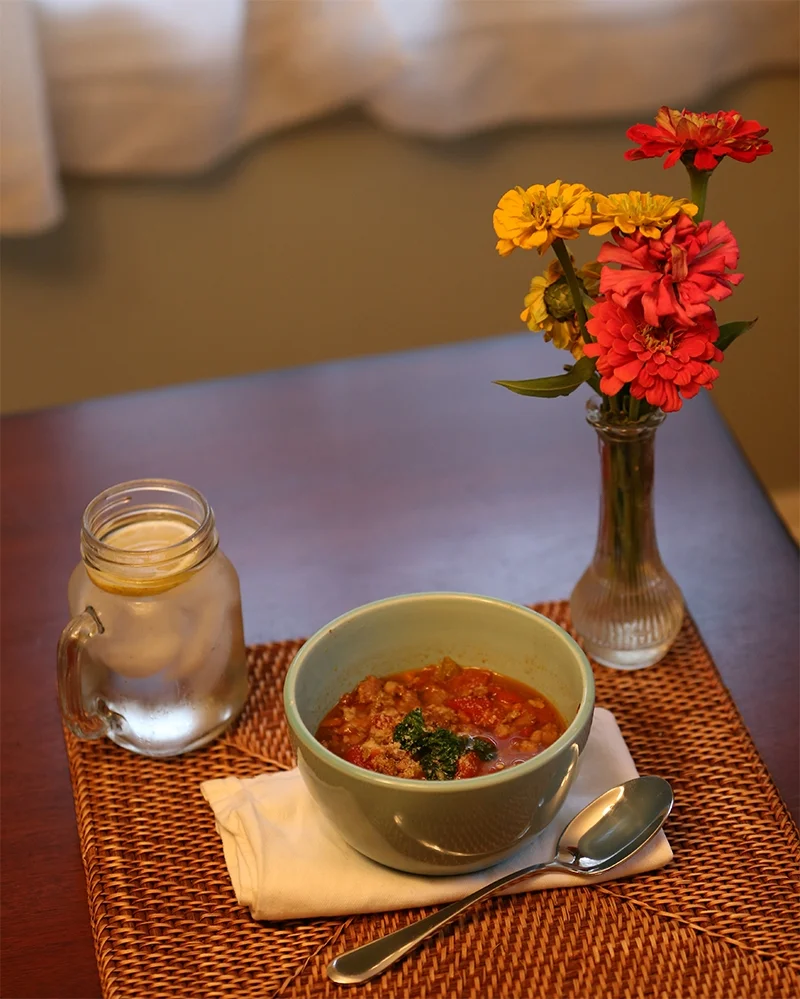 I tend to simmer my soup for long periods of time. I love how it makes my house smell, and I usually am doing 800 other things so leaving it on the stove to cook until I'm ready to eat works well for me. This soup is also exponentially more delicious the next day, once all the flavors have had a chance to meld together over night. Note that the next day, there will likely be a layer of semi-hard oil on the top of the soup. You can very easily skim this off and throw away.