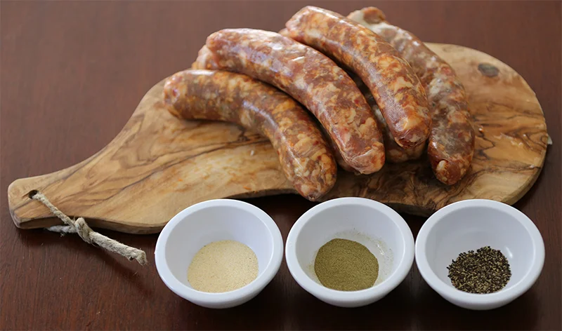 You'll want to remove them from their casing. There is no glamorous way to do this (or say this really). Just squeeze the sausage out of the casing. Yup, there you have it.