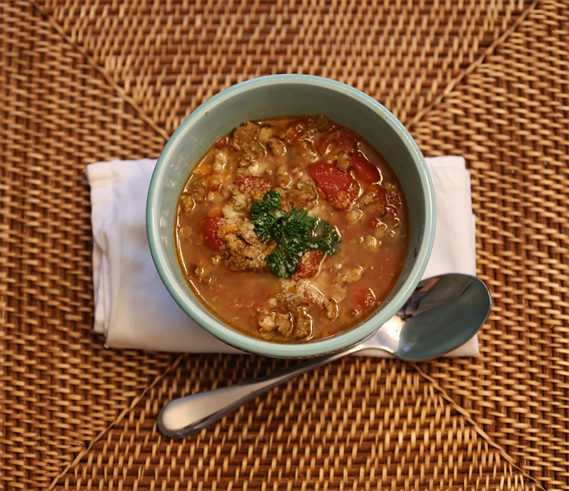 I started playing around with this recipe several years ago during my first foray into grain-free eating. The inspiration for this soup is Bertucci's Sausage Soup. If you haven't had it, you should. It is pretty remarkable. However, it is loaded with sodium and also, they make theirs with (gasp!) rice. So when I first started cutting out grains, and needed a soup, I thought this would be a good place to start. Nix the rice, up the veggies, and bam! You've got yourself a go-to paleo/grain-free/gluten-free soup to get you through the winter.