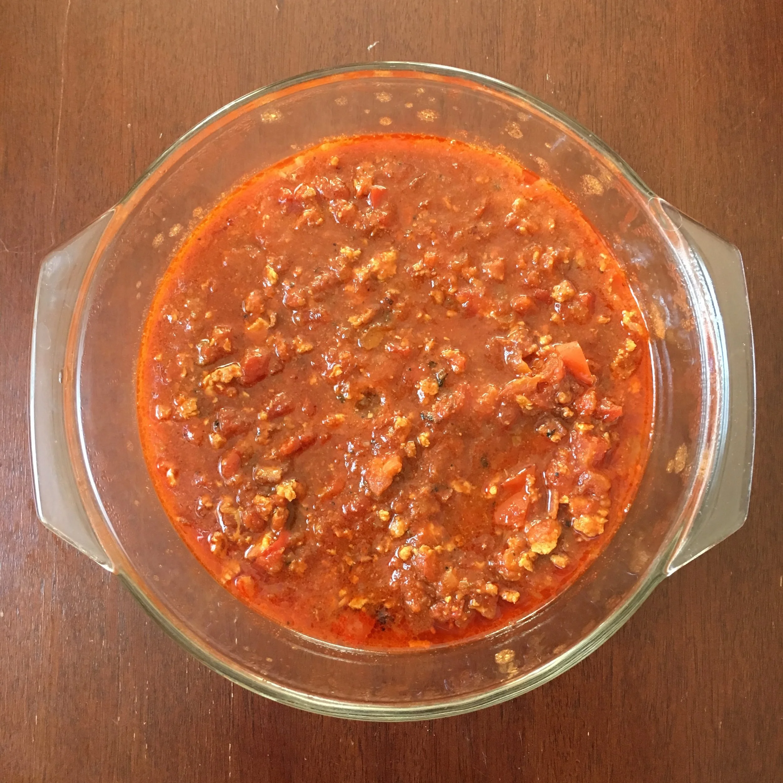 - Once your turkey is at your preferred crumbliness, add the diced tomatoes and the crushed tomatoes, and stir to combine.